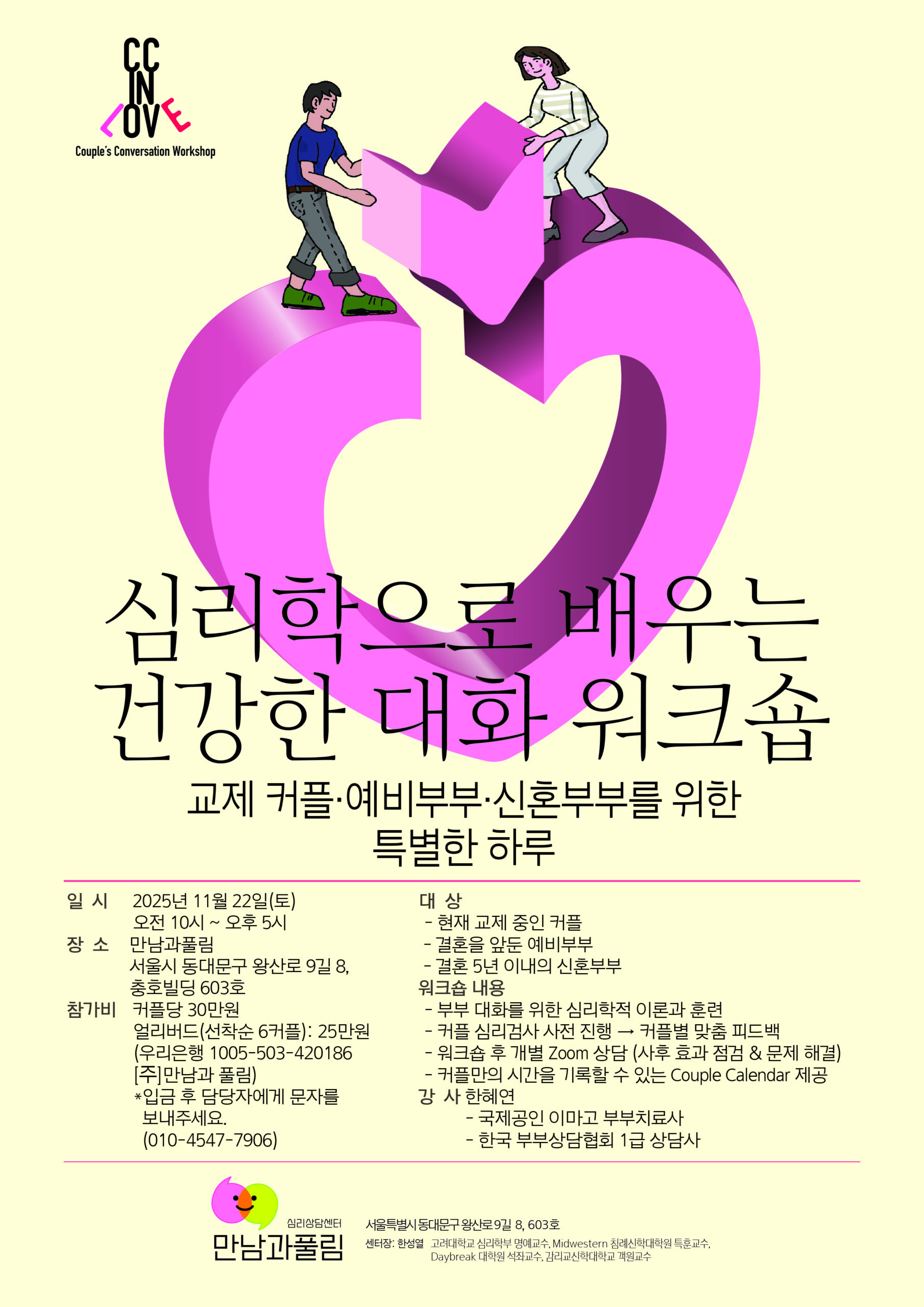 개인의 치유부터 전문가 양성까지 ‘만남과 풀림’은 마음의 모든 여정을 함께합니다.